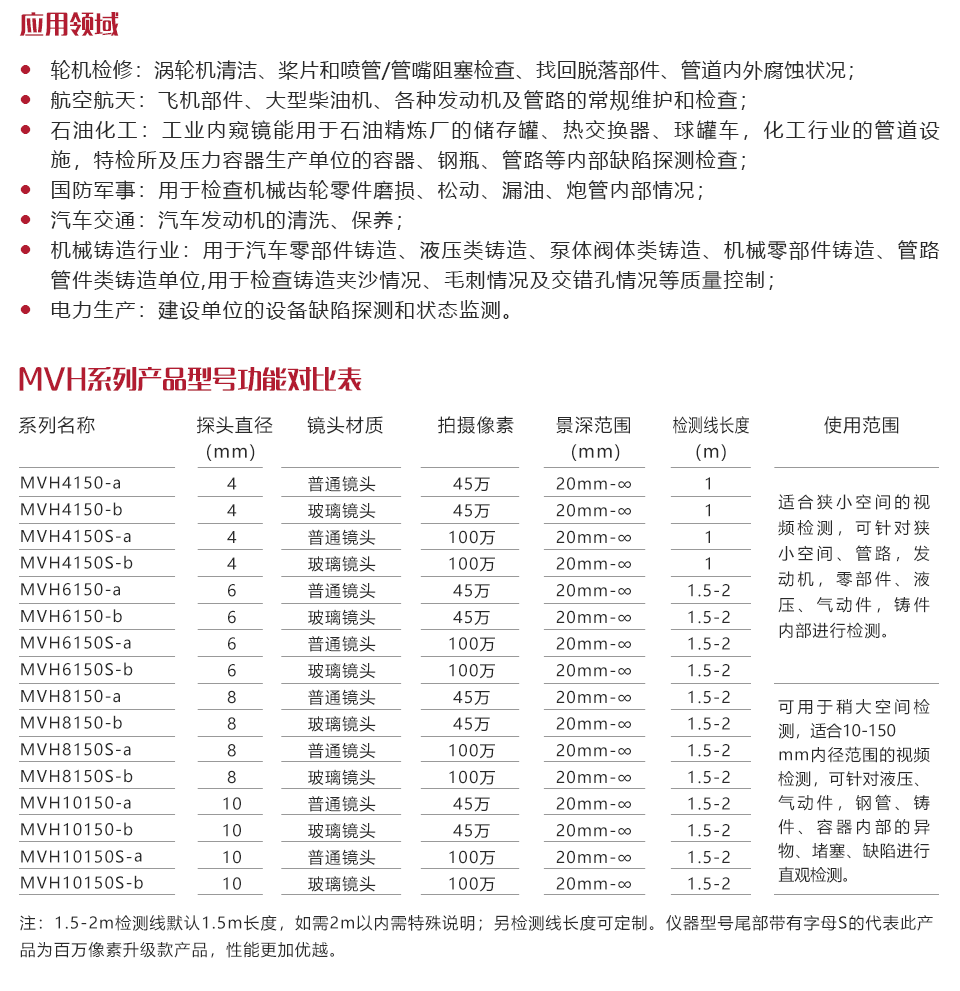 可用于稍大空間檢測,適合10-150mm內(nèi)徑范圍的視頻檢測,可針對液壓、氣動件,鋼管、鑄件、容器內(nèi)部的異物、堵塞、缺陷進(jìn)行直觀檢測。