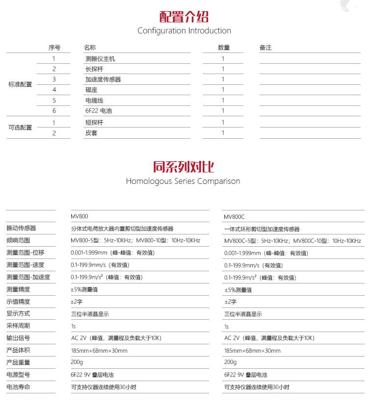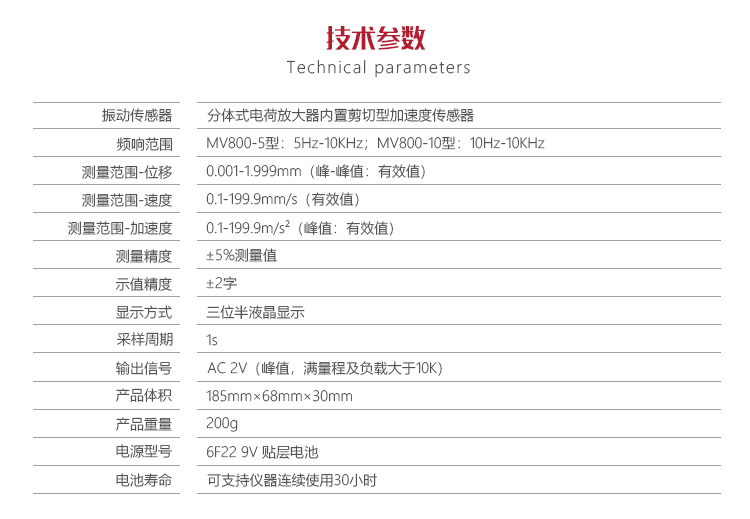 | 頻響范圍 | MV800-5型:5Hz~10KHz;MV800-10型:10Hz~10KHz |