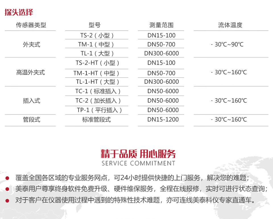 傳感器溫度:外夾式:﹣30℃~90℃;高溫外夾式、插入式、管段式:﹣30℃~160℃;