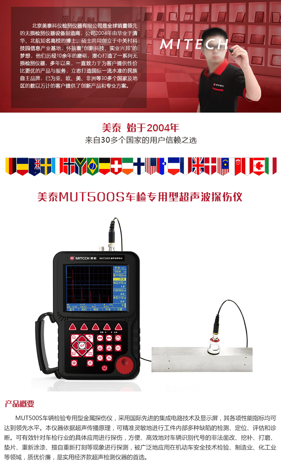 產(chǎn)品概述MUT500S車輛檢驗(yàn)專用型金屬探傷儀,采用國際先進(jìn)的集成電路技術(shù)及顯示屏,其各項(xiàng)性能指標(biāo)均可達(dá)到領(lǐng)先水平。本儀器依據(jù)超聲傳播原理,可精準(zhǔn)靈敏地進(jìn)行工件內(nèi)部多種缺陷的檢測、定位、評估和診斷??捎行п槍嚈z行業(yè)的具體應(yīng)用進(jìn)行探傷,方便、高效地對車輛識別代號的非法鑿改、挖補(bǔ)、打磨、墊片、重新涂漆、擅自重新打刻等現(xiàn)象進(jìn)行探測,被廣泛地應(yīng)用在機(jī)動(dòng)車安全技術(shù)檢驗(yàn)、制造業(yè)、化工業(yè)等領(lǐng)域,質(zhì)優(yōu)價(jià)廉,是實(shí)用經(jīng)濟(jì)款超聲檢測儀器的首選。