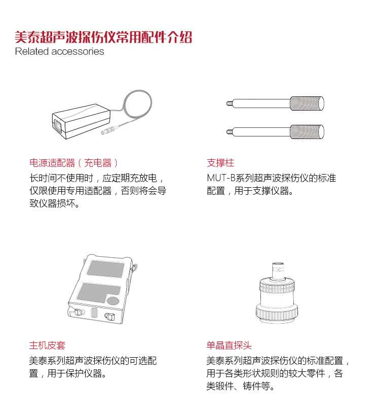 | 美泰超聲波探傷儀拎包長33cm、寬17cm、高21.5cm,可將探傷儀主機及配件置于拎包內,便于隨身攜帶。 | |