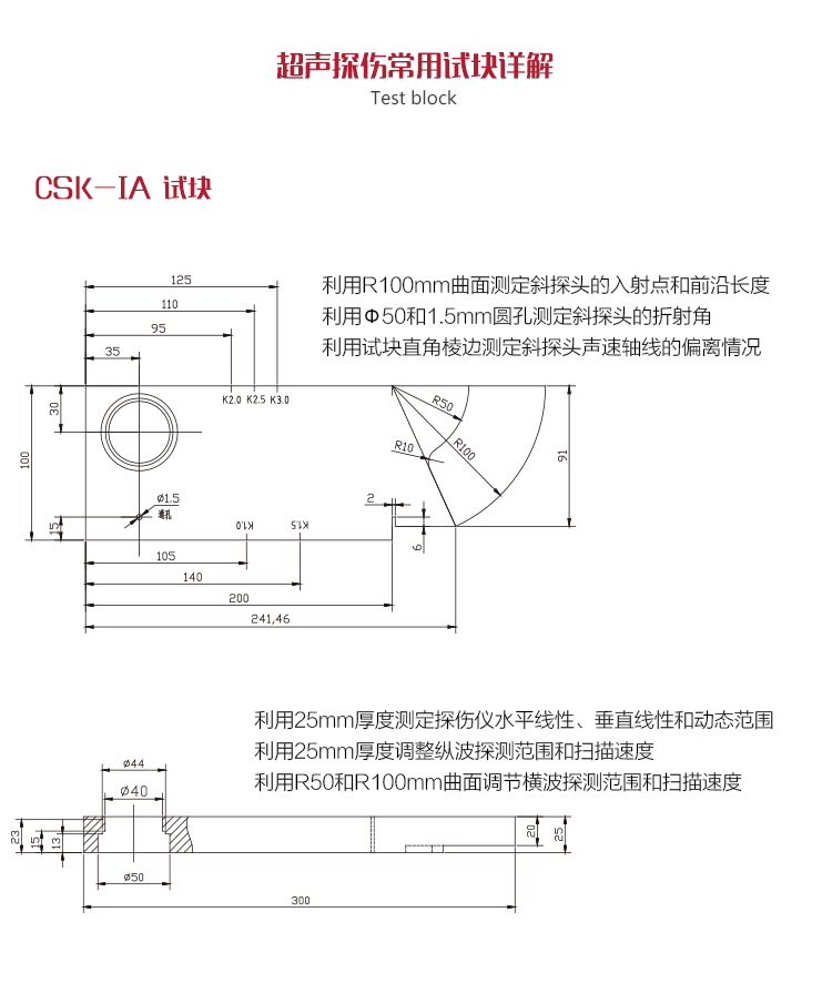 | 2.5P、Φ20、K2,各部件可拆卸,是進行斜射探傷用的探頭,主要用于橫波探傷。 | |