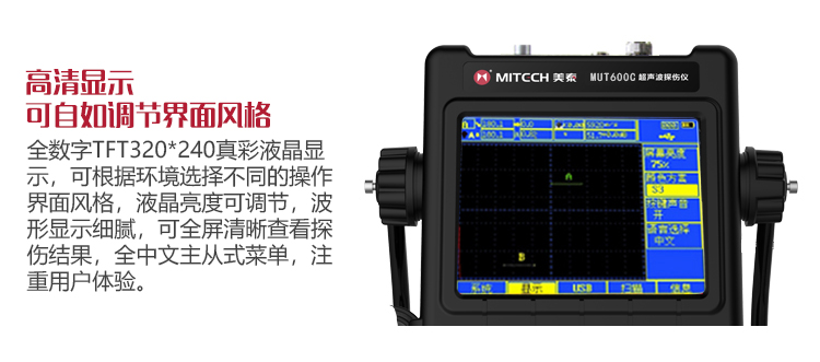 ?MUT600C采用全數字真彩色液晶顯示器,可根據環(huán)境選擇操作界面風格,液晶亮度可自由設定。