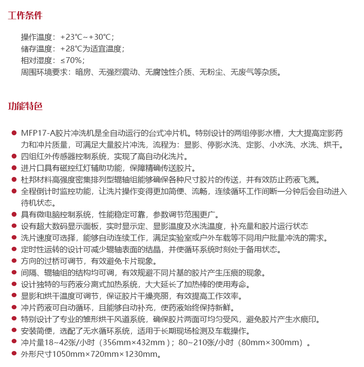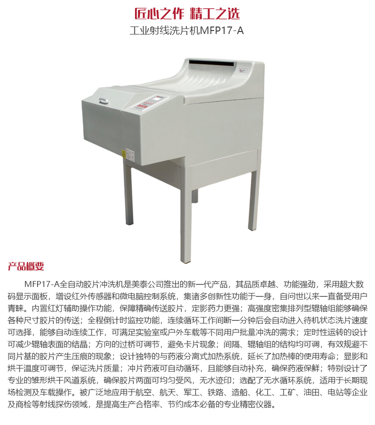 功能用途MFP17-A膠片沖洗機是全自動運行的臺式?jīng)_片機。