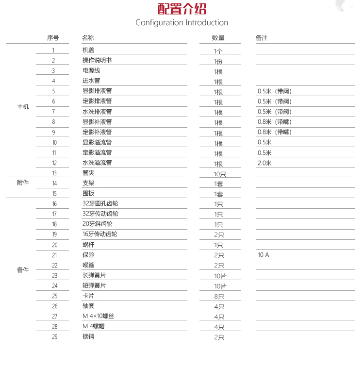 儀器特點全自動運行的臺式?jīng)_片機。特別設計的兩組停影水槽,大大提高定影藥力和沖片質量,可滿足大量膠 片沖洗,流程為:顯影、停影水洗、定影、