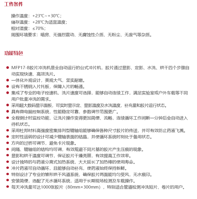 可以自動(dòng)沖洗膠片并具備備用狀態(tài)程序。