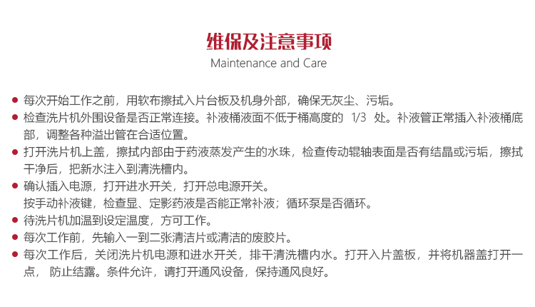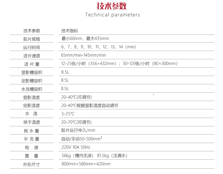 | 洗 片 量 | 12~25張/小時(shí)(356×432mm);30~120張/小時(shí)(80×300mm) |