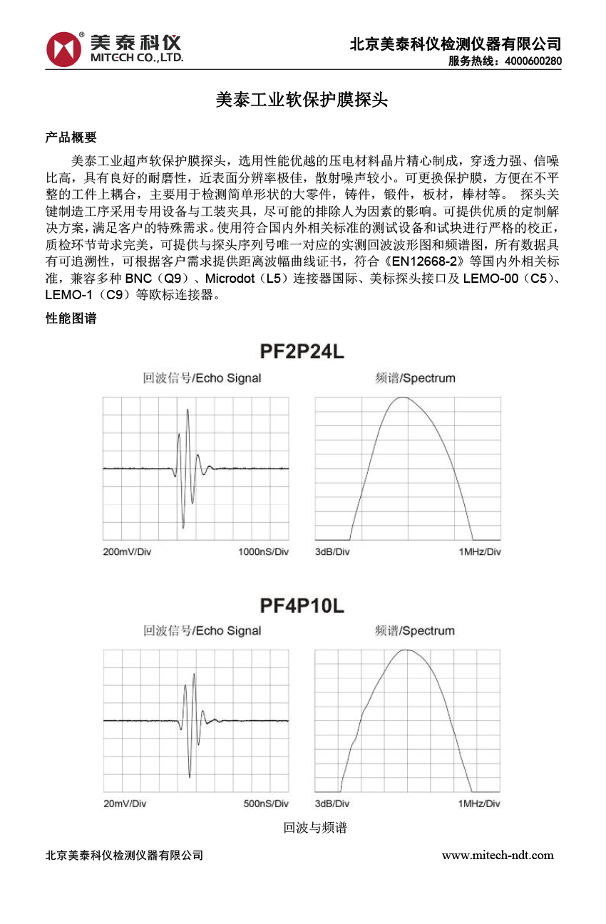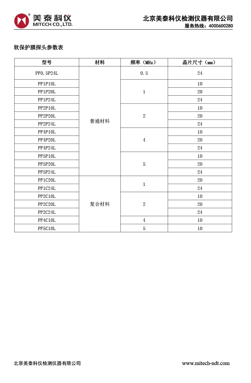 產(chǎn)品概述美泰工業(yè)超聲軟保護(hù)膜探頭,選用性能優(yōu)越的壓電材料晶片精心制成,穿透力強(qiáng)、信噪比高,具有良好的耐磨性,近表面分辨率極佳,散射噪聲較小??筛鼡Q保護(hù)膜,方便在不平整的工件上耦合,主要用于檢測簡單形狀的大零件,鑄件,鍛件,板材,棒材等。 探頭關(guān)鍵制造工序采用專用設(shè)備與工裝夾具,盡可能的排除人為因素的影響??商峁﹥?yōu)質(zhì)的定制解決方案,滿足客戶的特殊需求。使用符合國內(nèi)外相關(guān)標(biāo)準(zhǔn)的測試設(shè)備和試塊進(jìn)行嚴(yán)格的校正,質(zhì)檢環(huán)節(jié)苛求完美,可提供與探頭序列號唯一對應(yīng)的實(shí)測回波波形圖和頻譜圖,所有數(shù)據(jù)具有可追溯性,可根據(jù)客戶需求提供距離波幅曲線證書,符合《EN12668-2》等國內(nèi)外相關(guān)標(biāo)準(zhǔn),兼容多種LEMO-00(C5)、LEMO-1(C9)連接器。