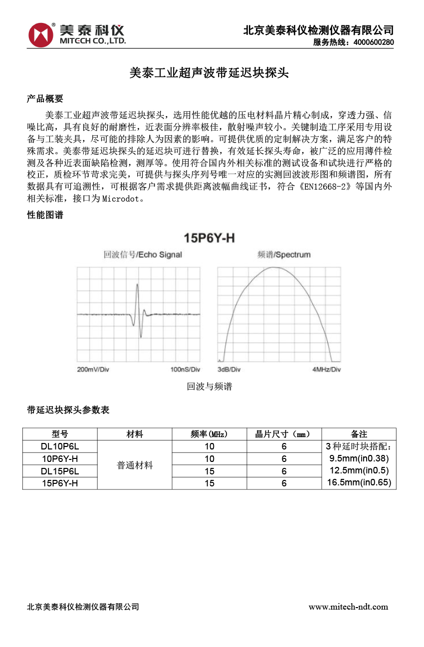 產(chǎn)品概述美泰工業(yè)超聲波帶延遲塊探頭,選用性能優(yōu)越的壓電材料晶片精心制成,穿透力強(qiáng)、信噪比高,具有良好的耐磨性,近表面分辨率極佳,散射噪聲較小。關(guān)鍵制造工序采用專用設(shè)備與工裝夾具,盡可能的排除人為因素的影響??商峁﹥?yōu)質(zhì)的定制解決方案,滿足客戶的特殊需求。美泰帶延遲塊探頭的延遲塊可進(jìn)行替換,有效延長(zhǎng)探頭壽命,被廣泛的應(yīng)用薄件檢測(cè)及各種近表面缺陷檢測(cè),測(cè)厚等。使用符合國(guó)內(nèi)外相關(guān)標(biāo)準(zhǔn)的測(cè)試設(shè)備和試塊進(jìn)行嚴(yán)格的校正,質(zhì)檢環(huán)節(jié)苛求完美,可提供與探頭序列號(hào)唯一對(duì)應(yīng)的實(shí)測(cè)回波波形圖和頻譜圖,所有數(shù)據(jù)具有可追溯性,可根據(jù)客戶需求提供距離波幅曲線證書,符合《EN12668-2》等國(guó)內(nèi)外相關(guān)標(biāo)準(zhǔn),接口為Microdot。