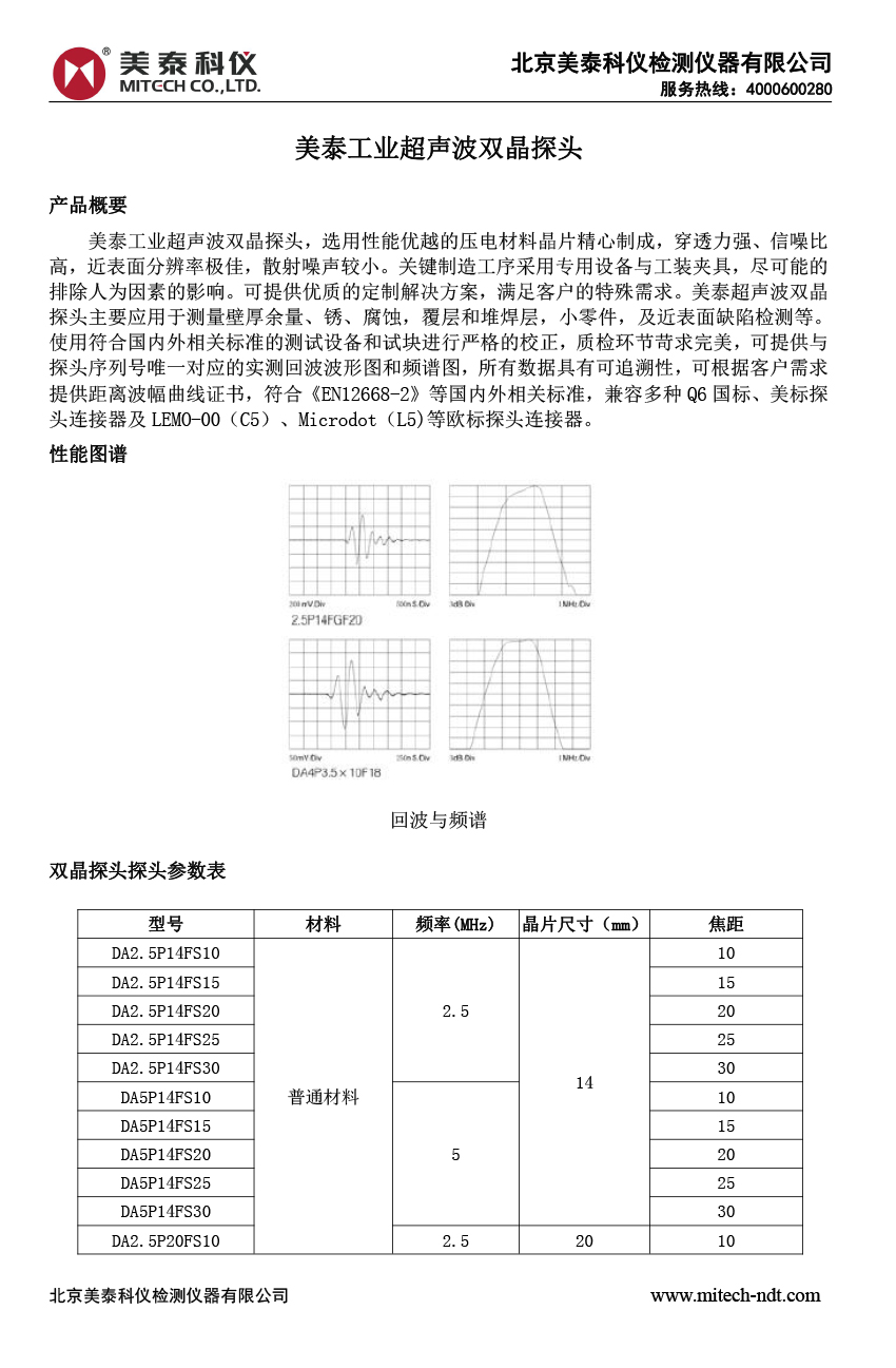 產(chǎn)品概述美泰工業(yè)超聲波雙晶探頭,選用性能優(yōu)越的壓電材料晶片精心制成,穿透力強(qiáng)、信噪比高,近表面分辨率極佳,散射噪聲較小。關(guān)鍵制造工序采用專用設(shè)備與工裝夾具,盡可能的排除人為因素的影響??商峁﹥?yōu)質(zhì)的定制解決方案,滿足客戶的特殊需求。美泰超聲波雙晶探頭主要應(yīng)用于測(cè)量壁厚余量、銹、腐蝕,覆層和堆焊層,小零件,及近表面缺陷檢測(cè)等。使用符合國內(nèi)外相關(guān)標(biāo)準(zhǔn)的測(cè)試設(shè)備和試塊進(jìn)行嚴(yán)格的校正,質(zhì)檢環(huán)節(jié)苛求完美,可提供與探頭序列號(hào)唯一對(duì)應(yīng)的實(shí)測(cè)回波波形圖和頻譜圖,所有數(shù)據(jù)具有可追溯性,可根據(jù)客戶需求提供距離波幅曲線證書,符合《EN12668-2》等國內(nèi)外相關(guān)標(biāo)準(zhǔn),兼容多種Q6國標(biāo)、美標(biāo)探頭連接器及LEMO-00(C5)、Microdot(L5)等歐標(biāo)探頭連接器。