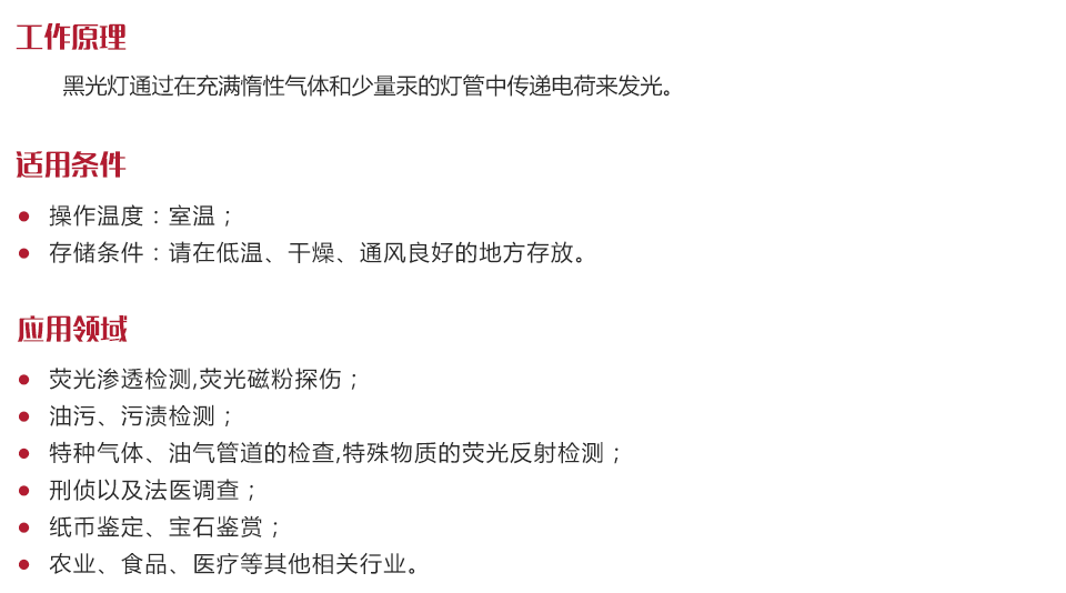 | 黑光波長 | 室溫25℃ UVA(360-370nm) |
