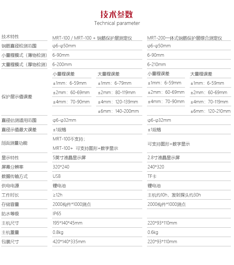 | 剖面測(cè)量功能 | MRT-100不支持;MRT-100+ 可支持圖形+數(shù)字顯示 |