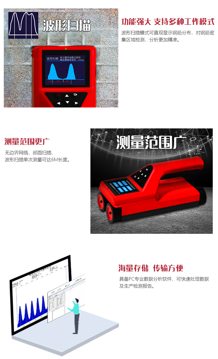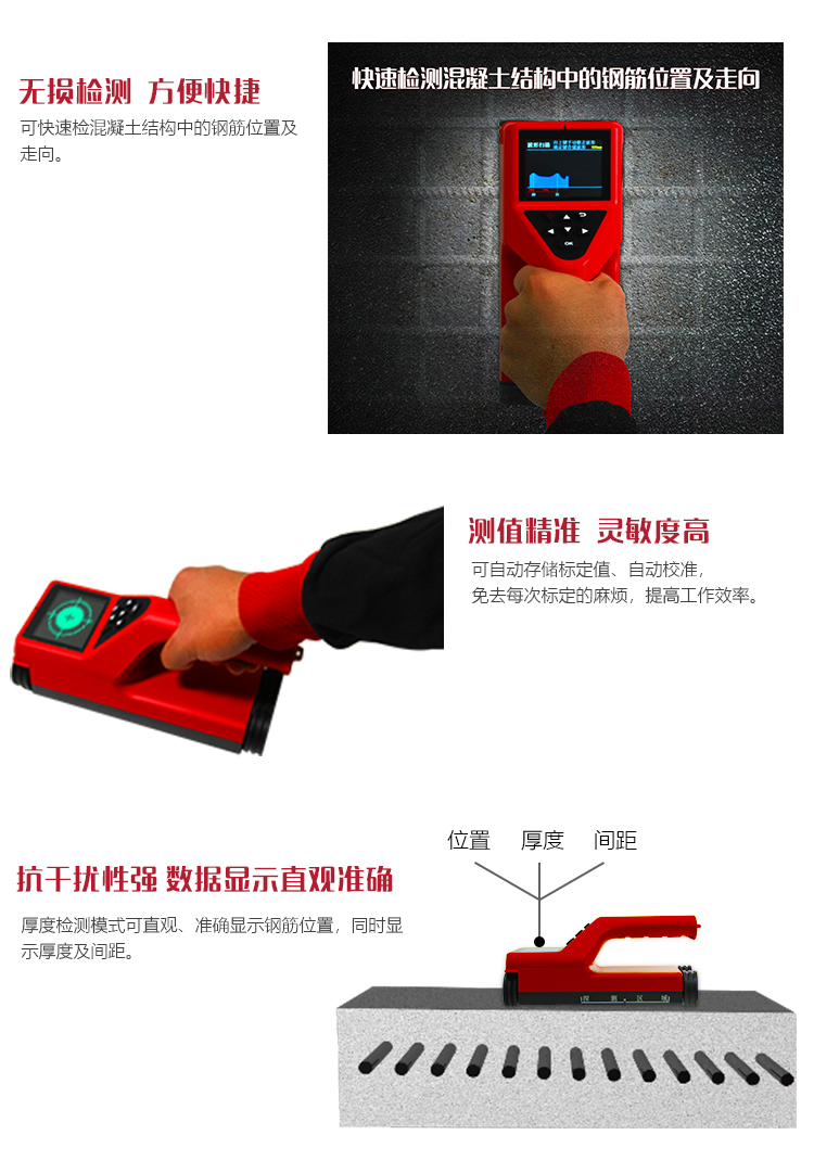 儀器特點(diǎn)l 現(xiàn)存鋼筋混凝土工程及新建鋼筋混凝土結(jié)構(gòu)施工質(zhì)量的檢測(cè);