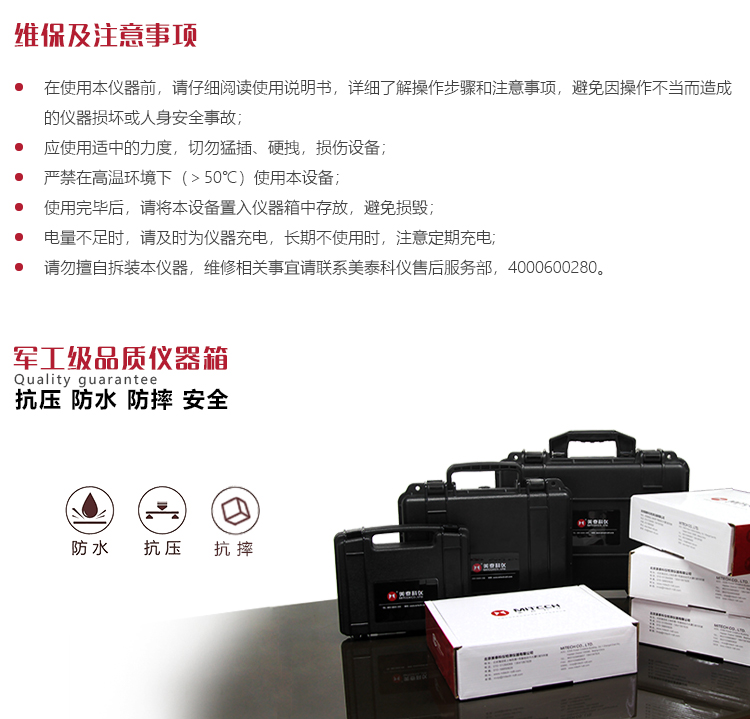 l 請勿擅自拆裝本儀器,維修相關(guān)事宜請聯(lián)系美泰科儀售后服務(wù)部,4000600280。