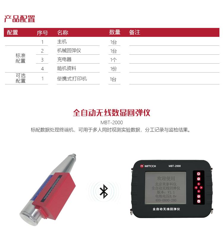 美泰MBT-2000全自動無線數(shù)顯回彈儀,依據(jù)彈擊裝置的沖擊回彈原理,可快捷無損的檢測混凝土的抗壓強度值,可即刻顯示被測工件的強度推定結(jié)果。其采用MOS圖像傳感器,配備高速USB接口,內(nèi)置多種行業(yè)標(biāo)準(zhǔn),可根據(jù)需求選擇相應(yīng)的曲線,可記錄回彈值、碳化深度值、角度、測試面等參數(shù),標(biāo)配數(shù)據(jù)處理終端機,可用于多人同時觀測試驗數(shù)據(jù),分工記錄與監(jiān)檢結(jié)果。被廣泛應(yīng)用于建筑施工質(zhì)量監(jiān)控檢測、高等院??蒲薪虒W(xué)實驗、質(zhì)檢部門質(zhì)量檢測環(huán)節(jié),是一款實用型工程質(zhì)量無損檢測儀器。