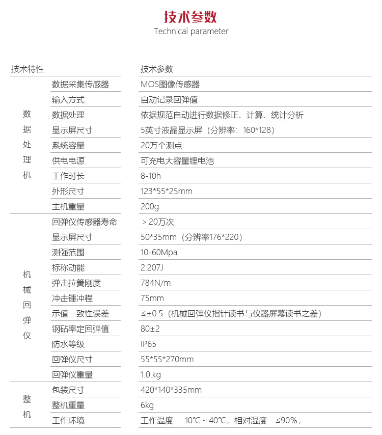 | 回彈值示值誤差 | ≤±0.5 |