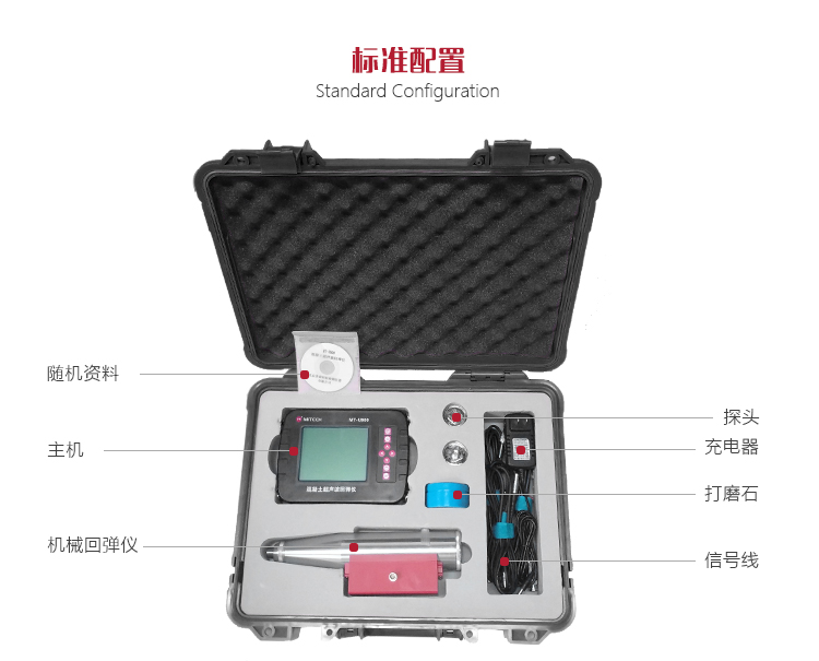 工作原理美泰MT-U900混凝土超聲波回彈儀,是一款功能強大的混凝土綜合檢測儀器。除具備普通回彈儀的強度測試功能外,可通過超聲波傳播測試混凝土的聲時、聲速等數(shù)值。其采用進口傳感器及先進的ARM處理器,測量快速準確,適用于各類建筑工程中普通混凝土抗壓強度的無損檢測,是保障工程質(zhì)量、節(jié)約生產(chǎn)成本必備的精密檢測儀器。